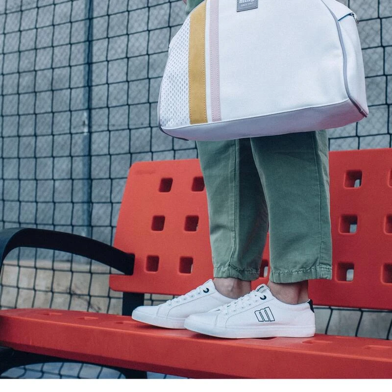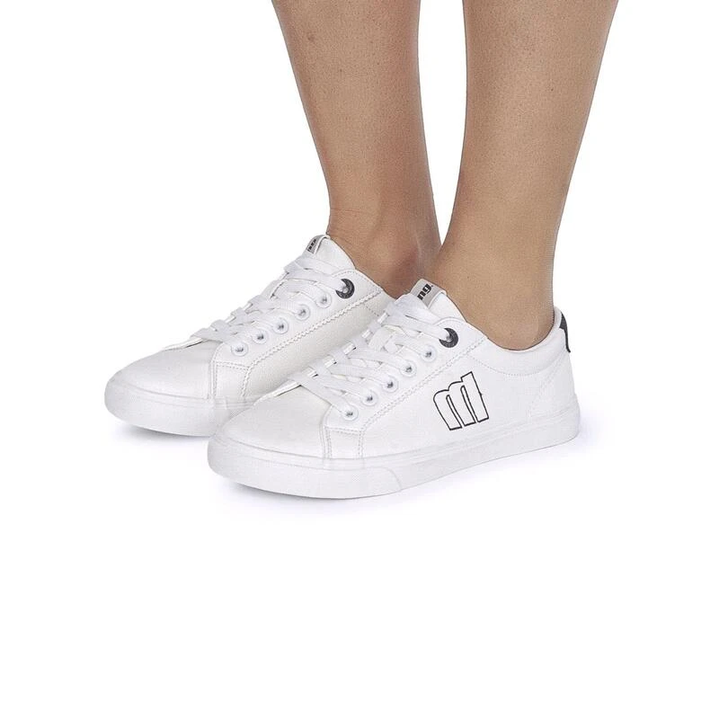 Compra en Decathlon Zapatillas de caminar para mujer mtng aria en color blanco Deportiva Aria de estilo casual de color blanco con suela fina, puntera redondeada y logo bordado en el lateral con perfil de color negro combinada con la trasera de la deportiva con cierre de cordon.